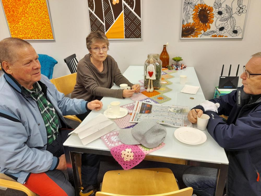 Iloiset emännät Tytti ja Raili sekä pj Suoman kanssa Raimo ja Heikki