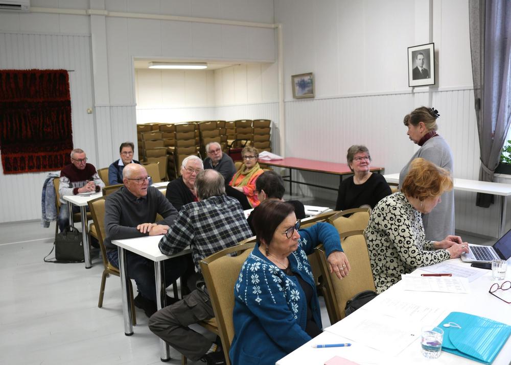 Jäsentapaaminen 28.2.24 Riksulassa. Sirkka vetää "Elämäni biisiä"