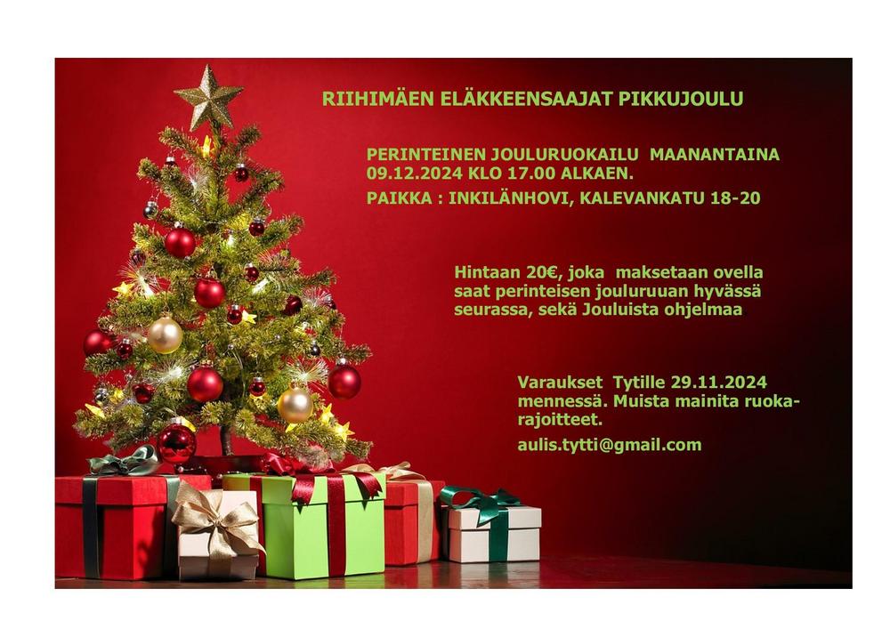 Hinta 20 euroa maksetaan käteisellä ovella. Arpajaiset ja jouluista tunnelmaa.